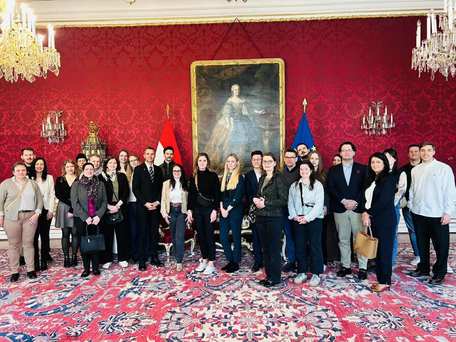 Die Exkursion bot damit eine hervorragende Gelegenheit, theoretische Inhalte mit praktischen Erfahrungen zu verbinden und staatliche Institutionen aus nächster Nähe kennenzulernen. Für die Studierenden war der Besuch ein besonderes Highlight – vor allem das bekannte Maria-Theresien-Zimmer, das Schlafgemach von Kaiserin Maria Theresia (1717-1780) – und ein weiterer Beleg für den Mehrwert praxisnaher Einblicke in die Arbeit öffentlicher Institutionen.(Bildcredit: Präsidentschaftskanzlei).
